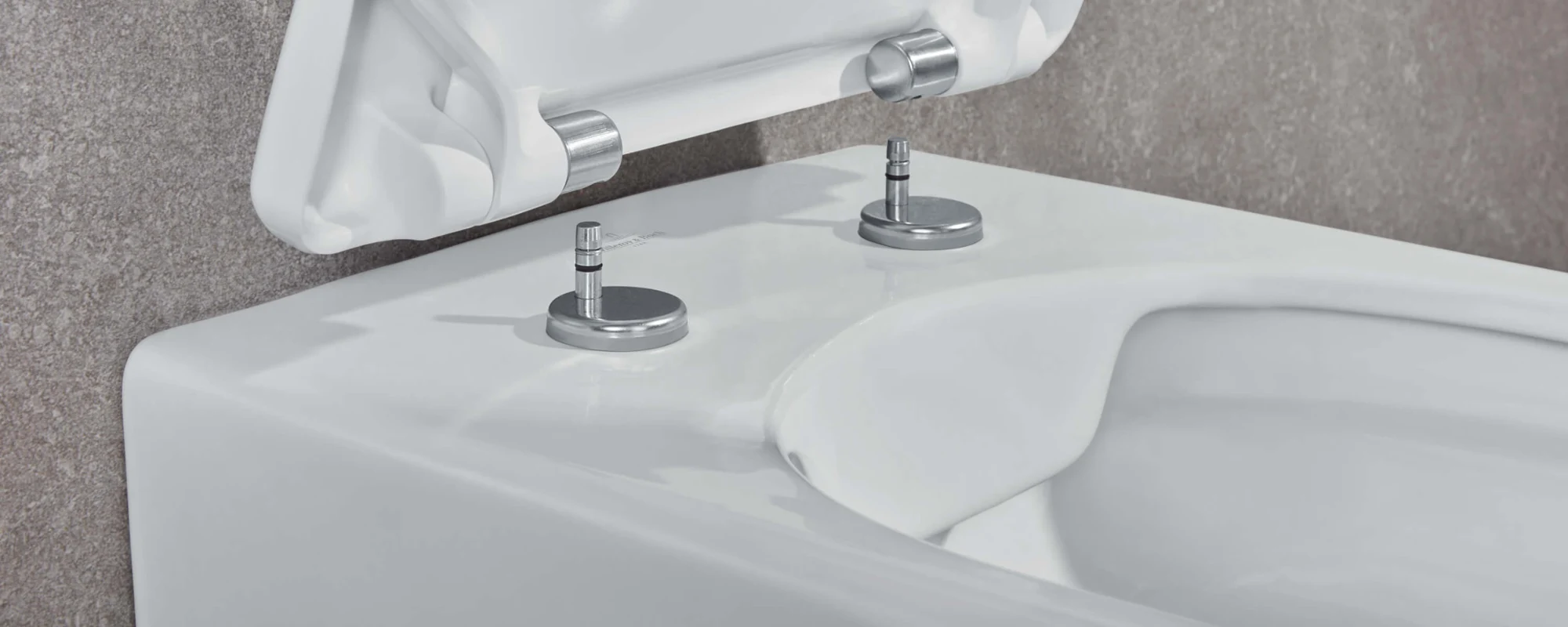 A Quick Release toilet seat offers greater flexibility for cleaning the bathroom. The innovative Quick Release function makes it possible to clean even difficult to reach parts of your toilet. What exactly is Quick Release? This system allows you to remove the toilet seat from the hinges in a single tool-free step and then replace it again. The Quick Release system offers practical benefits for first installation too as you can attach and adjust the hinges before positioning the toilet seat. The most important consideration is checking the compatibility of the dimensions of your selected Villeroy & Boch toilet seat and toilet.