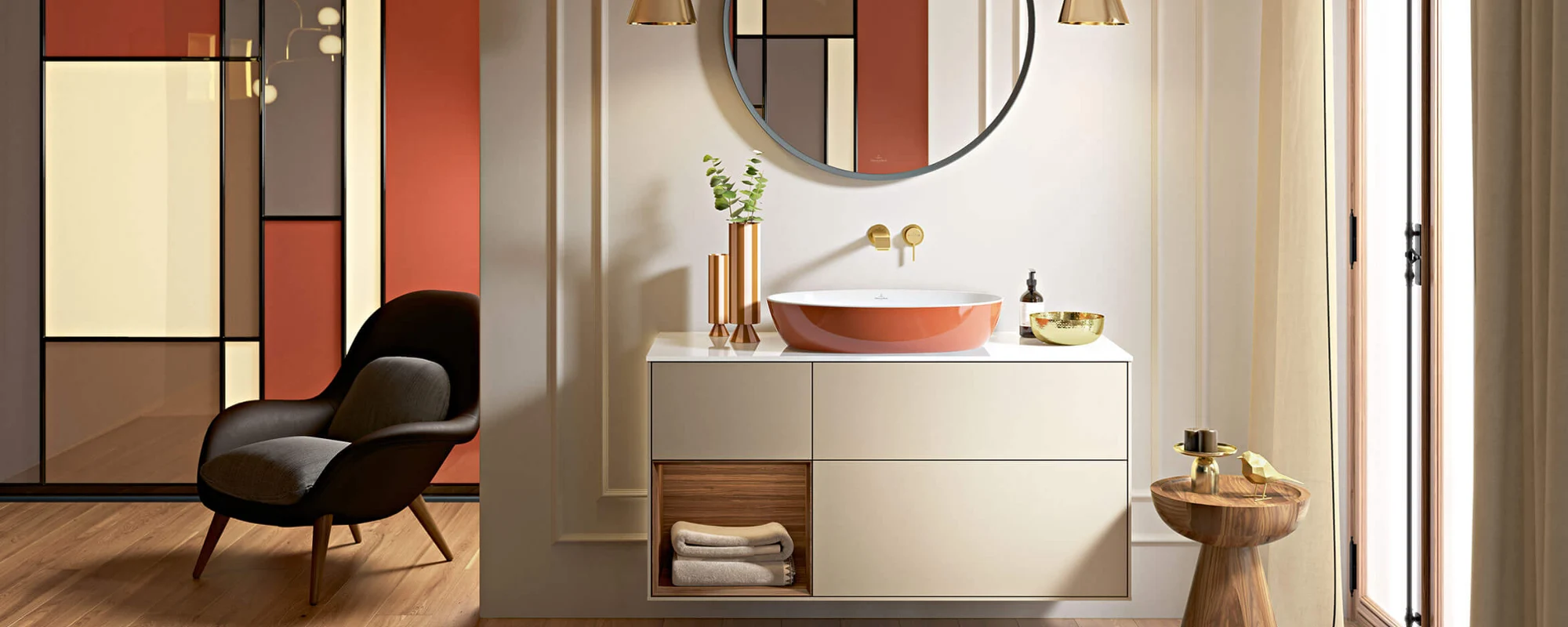 You can use colour to create a cosier and more homely atmosphere in your bathroom. We will take you on a journey into a world of colour, brimming with ideas, inspiration and tips. Discover: tender pink, vibrant red, warm yellow, natural green, peaceful blue and earthy greige.