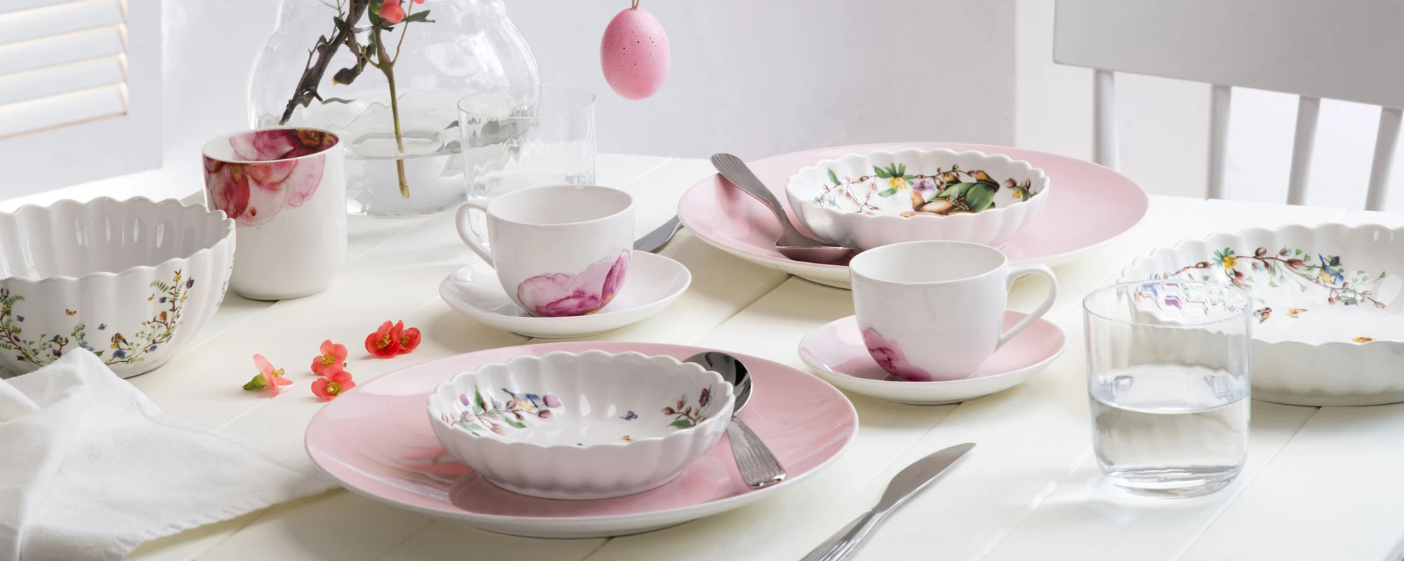 Amaze your guests with your Easter table setting. The tableware collections from Villeroy & Boch offer you a wide range of design options. You’ll find everything you need for a successful Easter brunch – from cups, mugs, and glasses to bowls, plates, cutlery, and decorations.