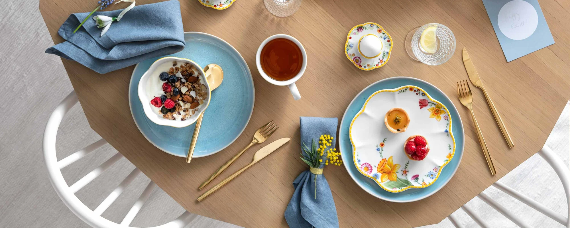Easter brunch is as much a part of Easter as the egg hunt, because it combines the most delicious features of breakfast and lunch. If you want to treat your guests to something special, you should offer them classic breakfast ingredients, as well as warm dishes. However, it's not just the large selection of delicious treats that makes Easter breakfast so special, it’s also the lovingly designed Easter brunch table decorations.